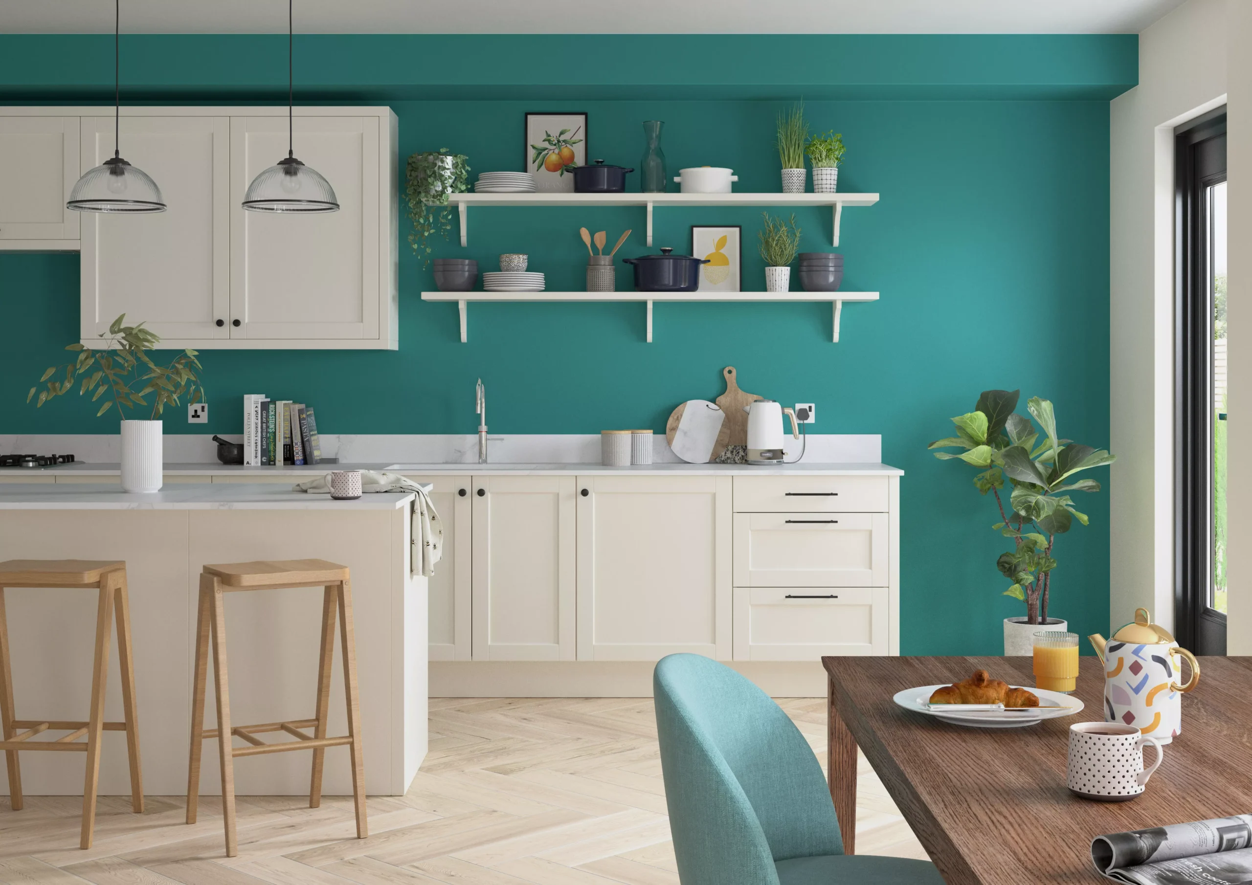 Simply refresh interior walls and ceilings with Dulux One Coat Proud peacock.