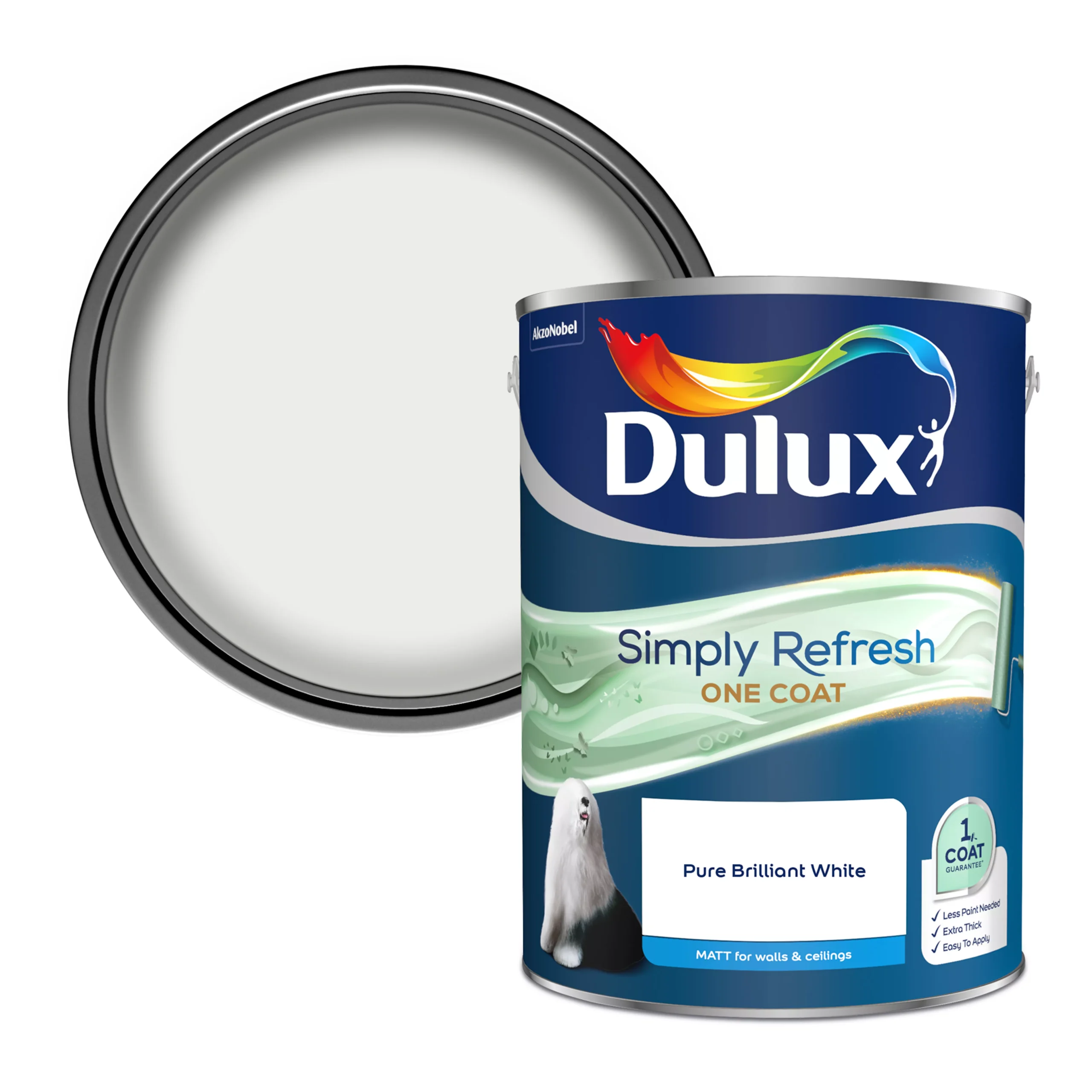 Simply refresh interior walls and ceilings with Dulux One Coat Pure brilliant white.